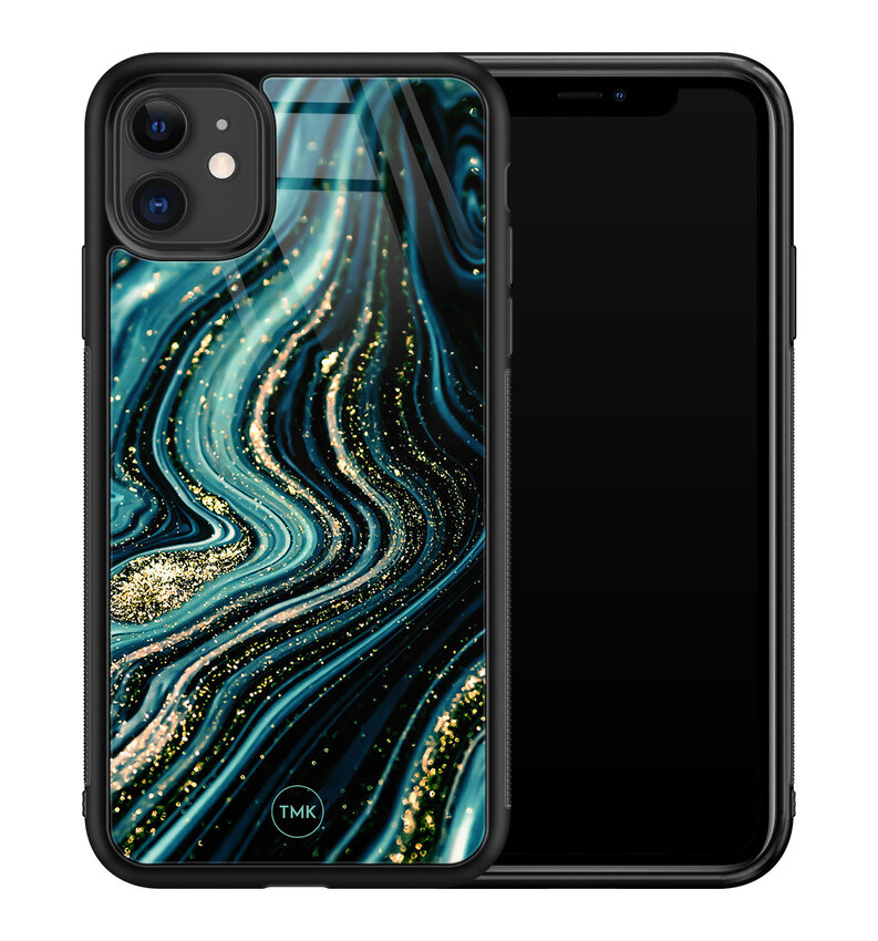 Geef jouw iPhone 11 een luxueuze en moderne uitstraling met onze glazen hardcases. Deze stijlvolle backcovers combineren een geharde glazen achterzijde met zwarte TPU-zijkanten, zodat je smartphone er prachtig uitziet. De glazen achterkant is krasbestendig en voelt glad en stevig aan, terwijl de verhoogde randen rondom de camera extra veiligheid bieden. De zijkanten van duurzaam TPU zorgen voor een fijne grip en maken het hoesje gemakkelijk te bevestigen of te verwijderen.