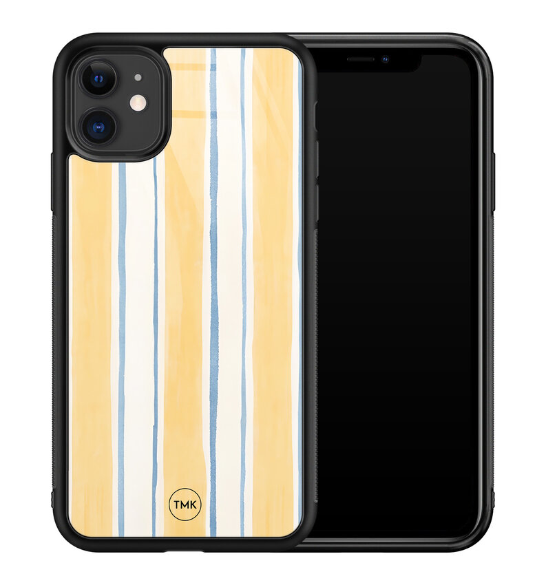 Geef jouw iPhone 11 een luxueuze en moderne uitstraling met onze glazen hardcases. Deze stijlvolle backcovers combineren een geharde glazen achterzijde met zwarte TPU-zijkanten, zodat je smartphone er prachtig uitziet. De glazen achterkant is krasbestendig en voelt glad en stevig aan, terwijl de verhoogde randen rondom de camera extra veiligheid bieden. De zijkanten van duurzaam TPU zorgen voor een fijne grip en maken het hoesje gemakkelijk te bevestigen of te verwijderen.