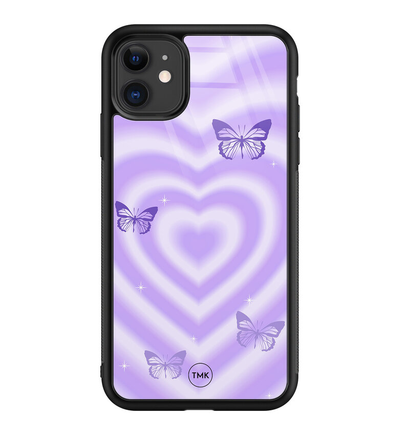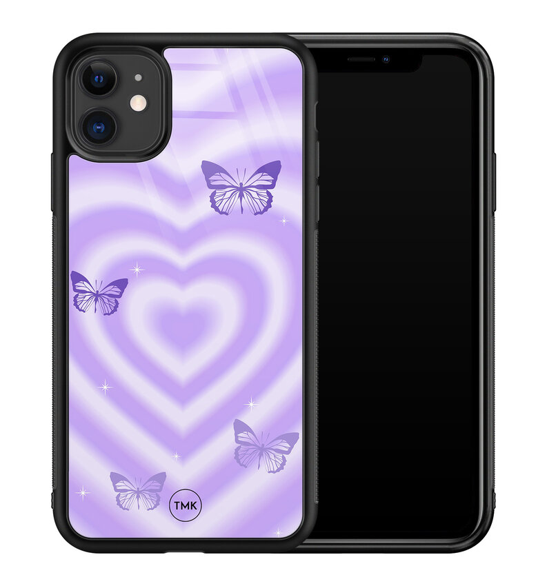 iPhone 11 glazen hardcase - Vlinders retro paars