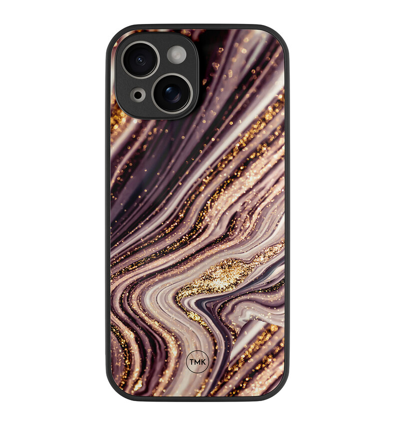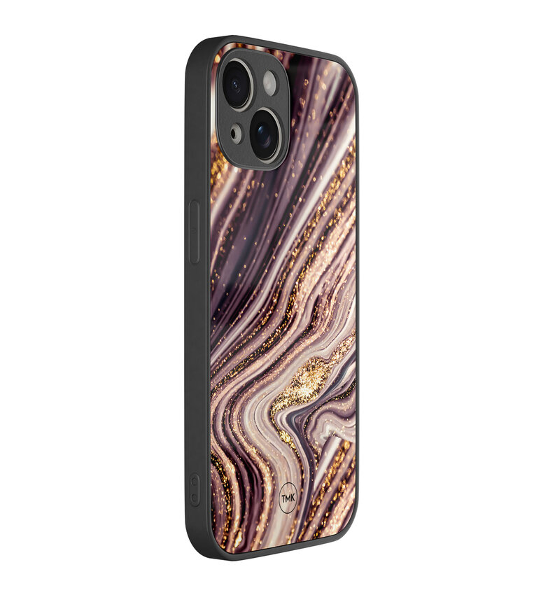 iPhone 13 glazen hardcase - Golden pink marble