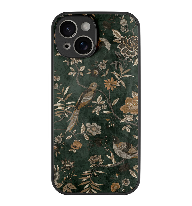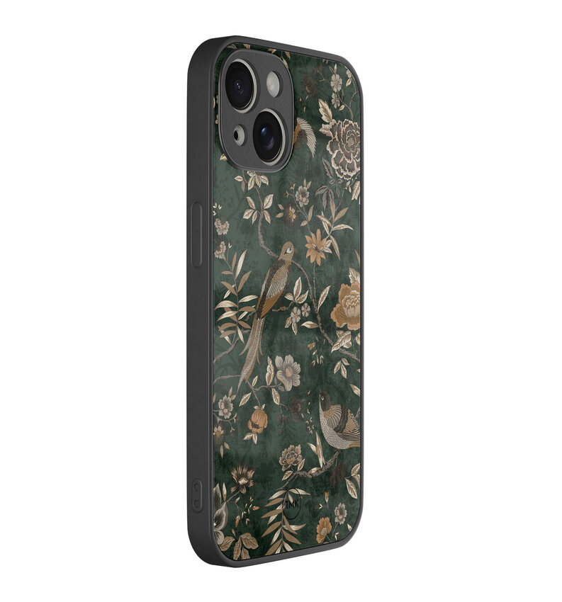 iPhone 13 glazen hardcase - Khaki golden flowers