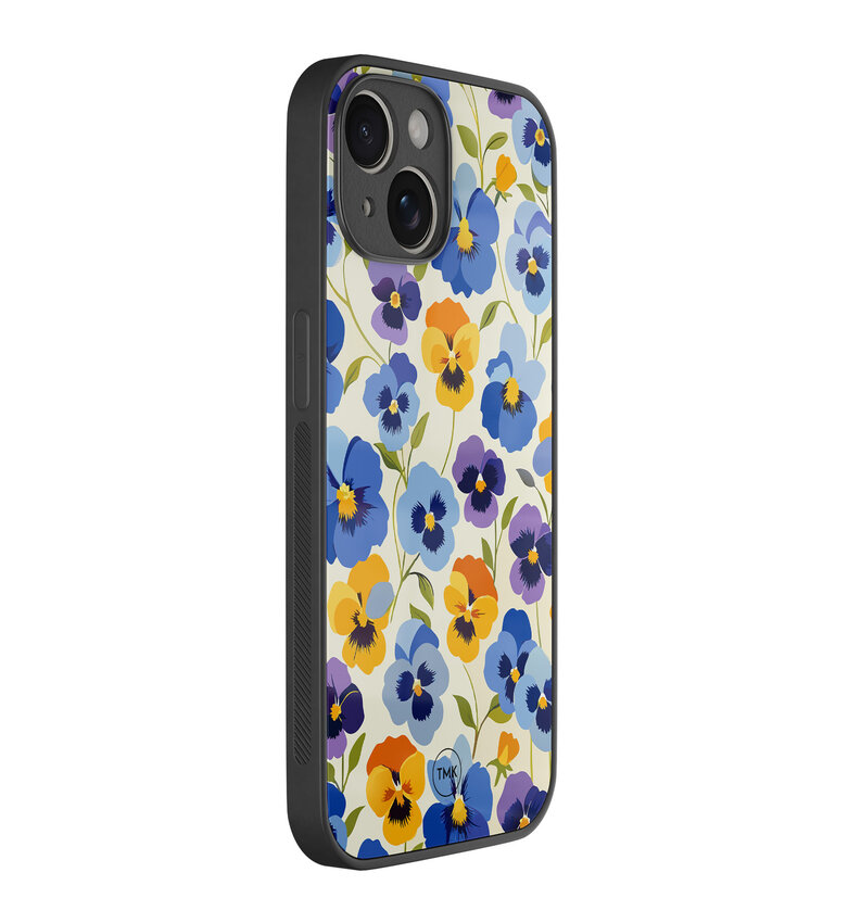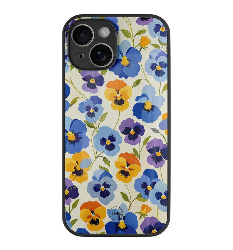 iPhone 14 glazen hardcase - Viooltjesmix bloemen