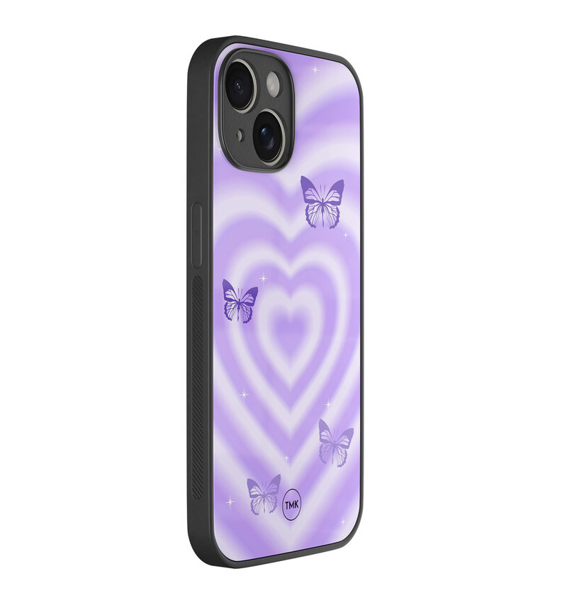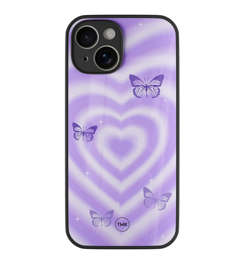 iPhone 14 glazen hardcase - Vlinders retro paars