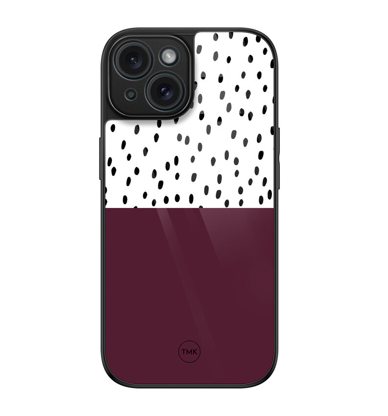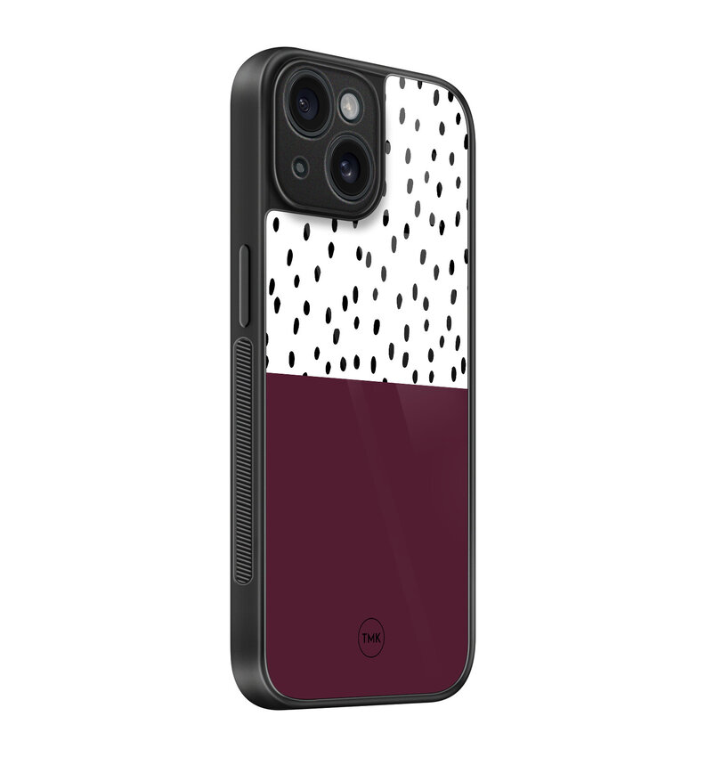 iPhone 15 glazen hardcase - Burgundy dots