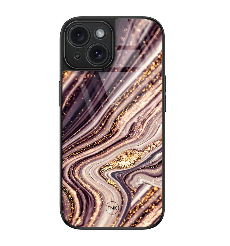 iPhone 15 glazen hardcase - Golden pink marble