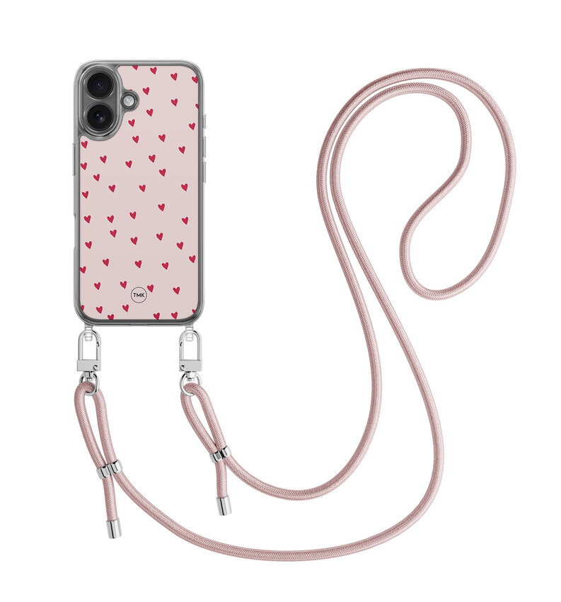 iPhone 16 hoesje met rosegoud koord - Cute hearts