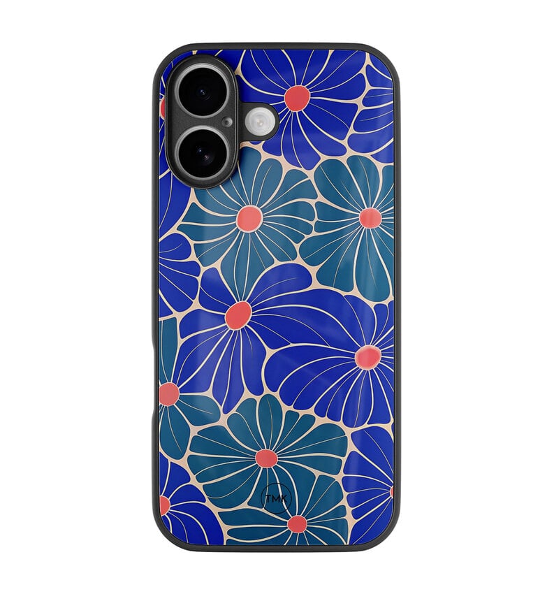 iPhone 17 glazen hardcase - Indigo bloemen