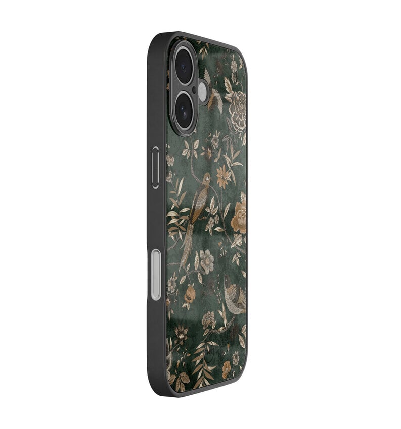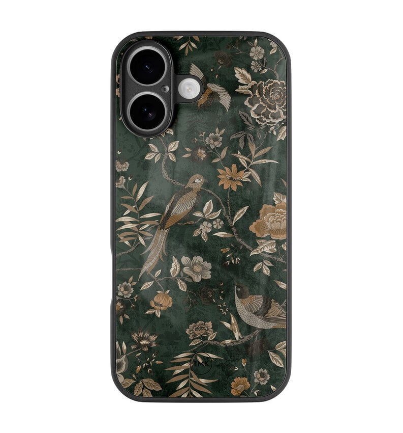 iPhone 17 glazen hardcase - Khaki golden flowers