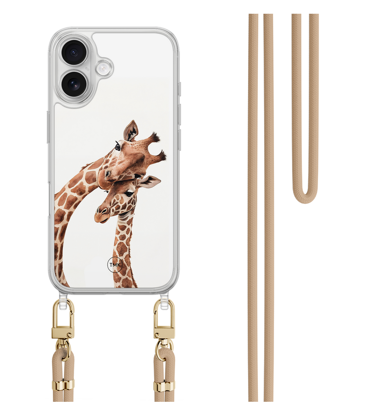 iPhone 17 hoesje met beige koord - Giraffen