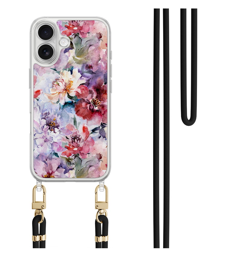 iPhone 17 hoesje met rosegoud koord - Bloemen acryl