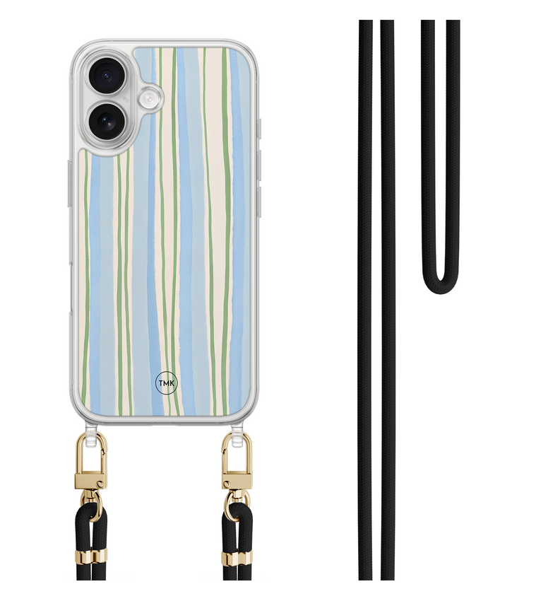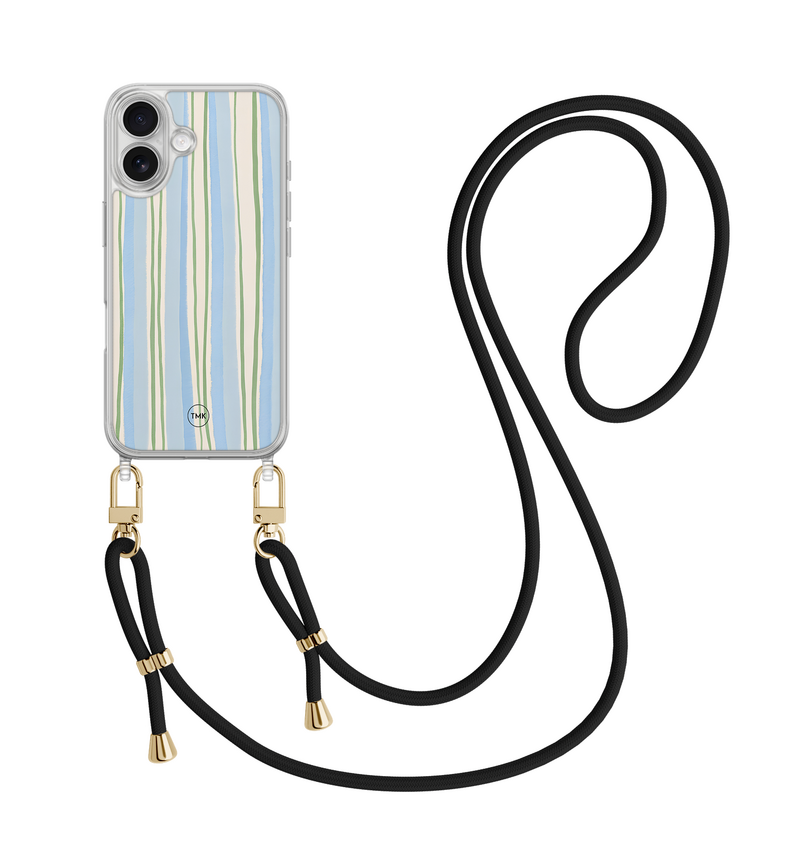 iPhone 17 hoesje met zwart koord - Pastelblauwe strepen