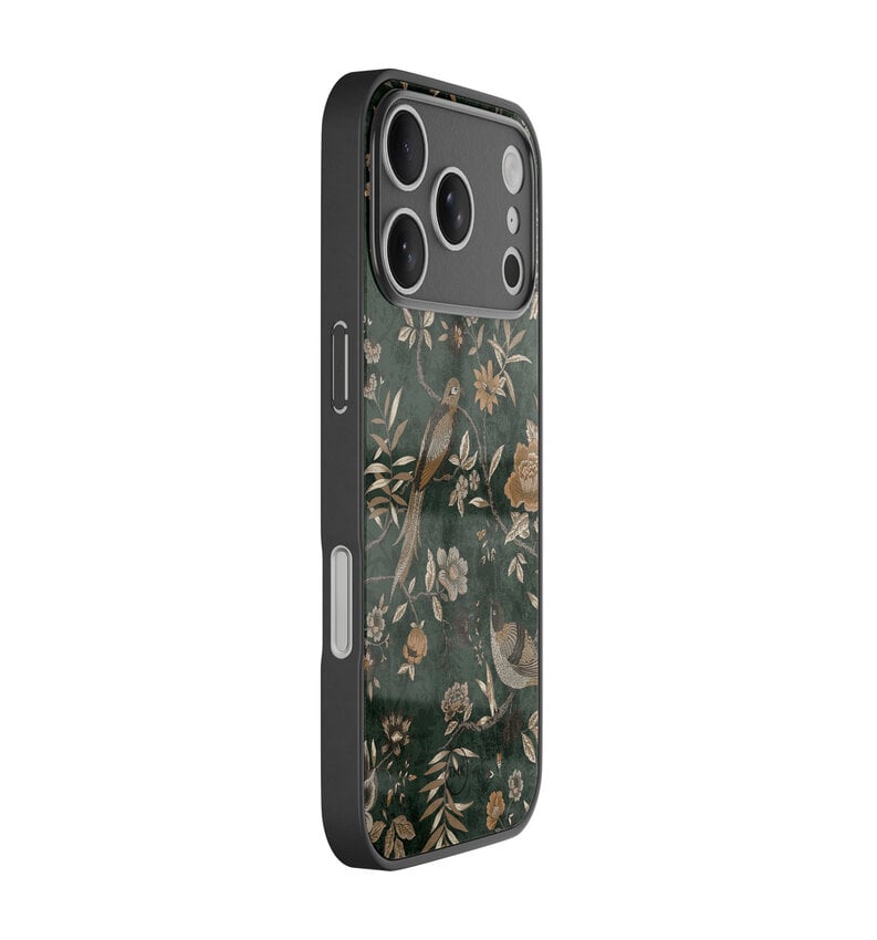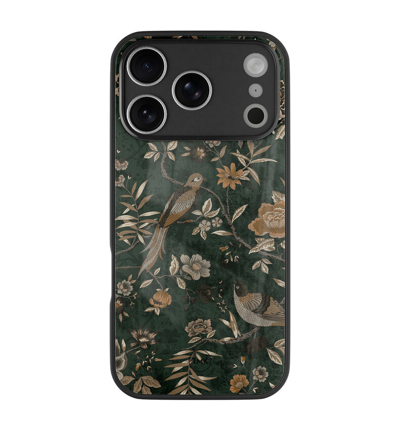 iPhone 17 Pro Max glazen hardcase - Khaki golden flowers