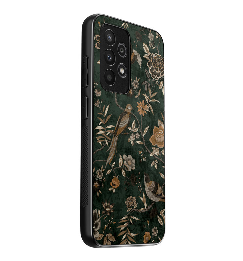 Samsung Galaxy A52 backcover hoesje - Khaki golden flowers