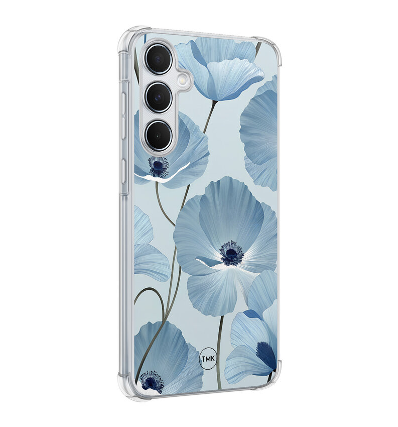 Samsung Galaxy A55 shockproof hoesje - Blauw bloemenveld