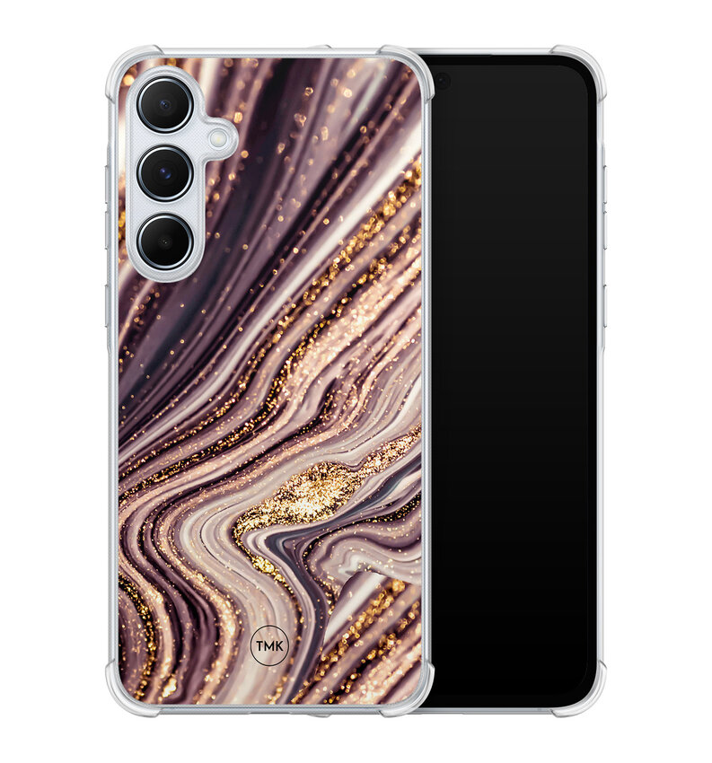 Samsung Galaxy A55 shockproof hoesje - Golden pink marble