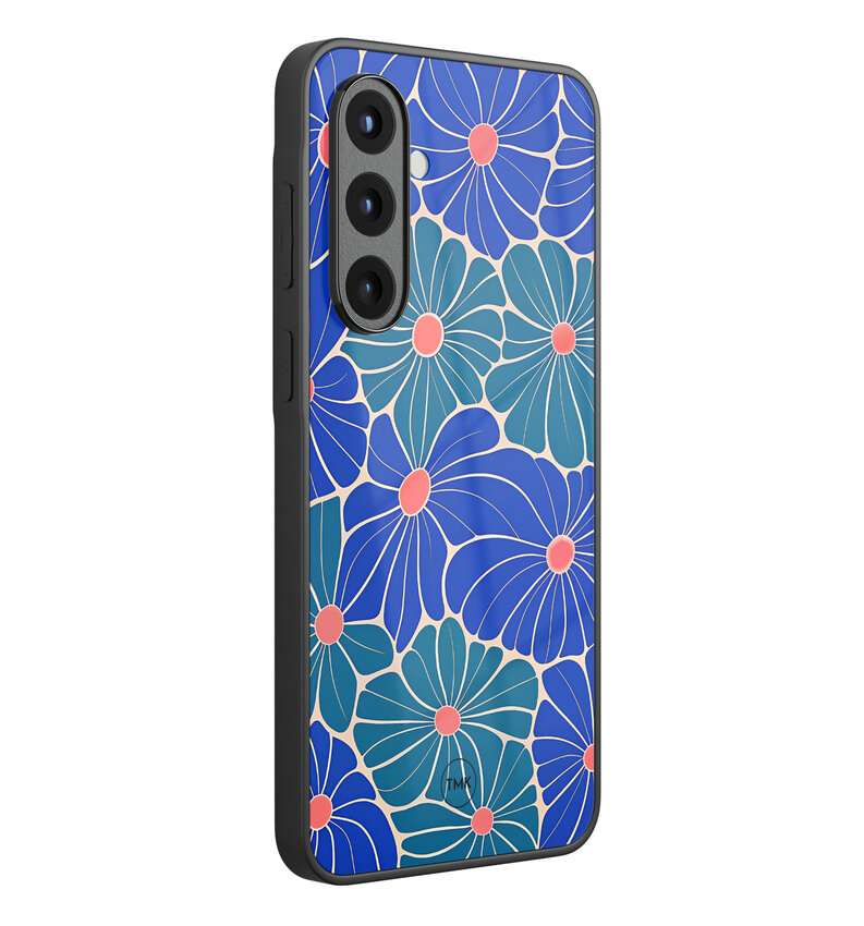 Samsung Galaxy A57 glazen hardcase - Indigo bloemen