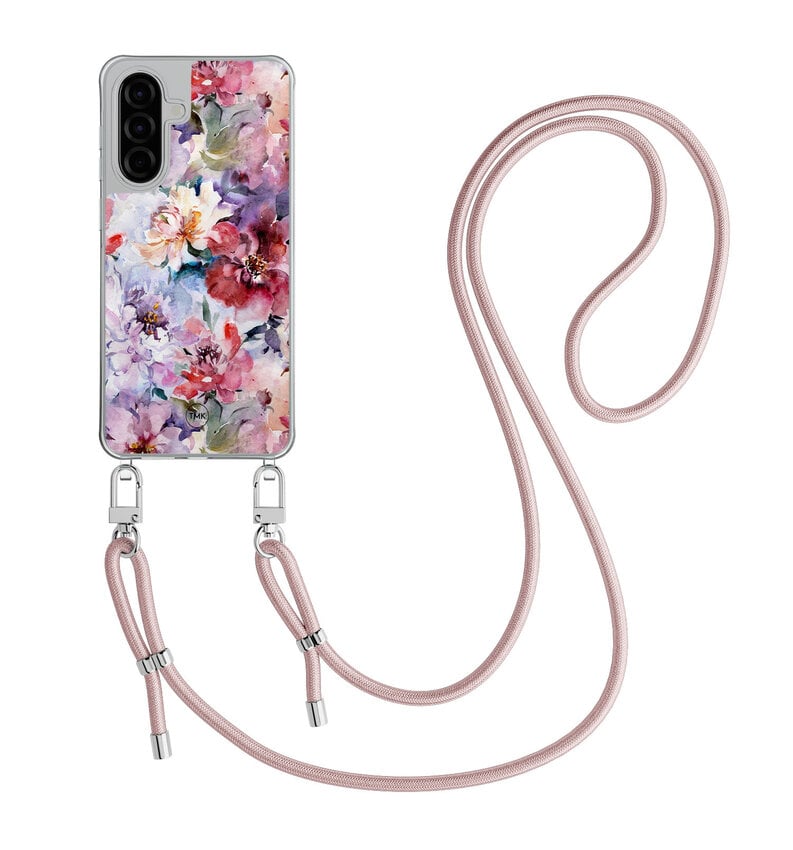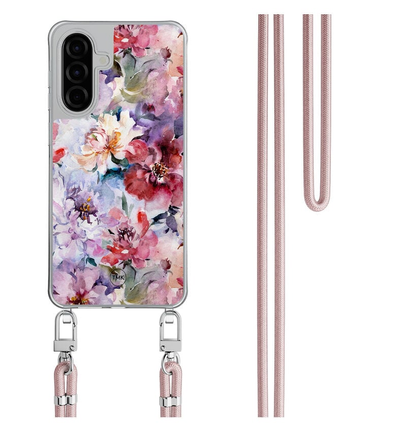 Samsung Galaxy A57 hoesje met rosegoud koord - Bloemen acryl