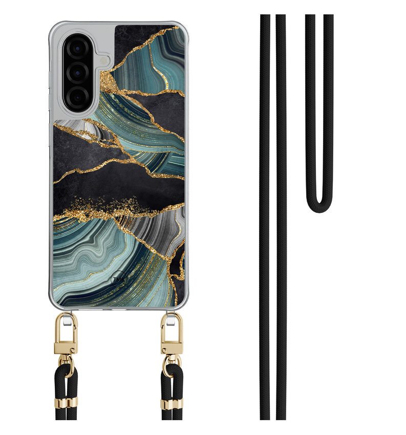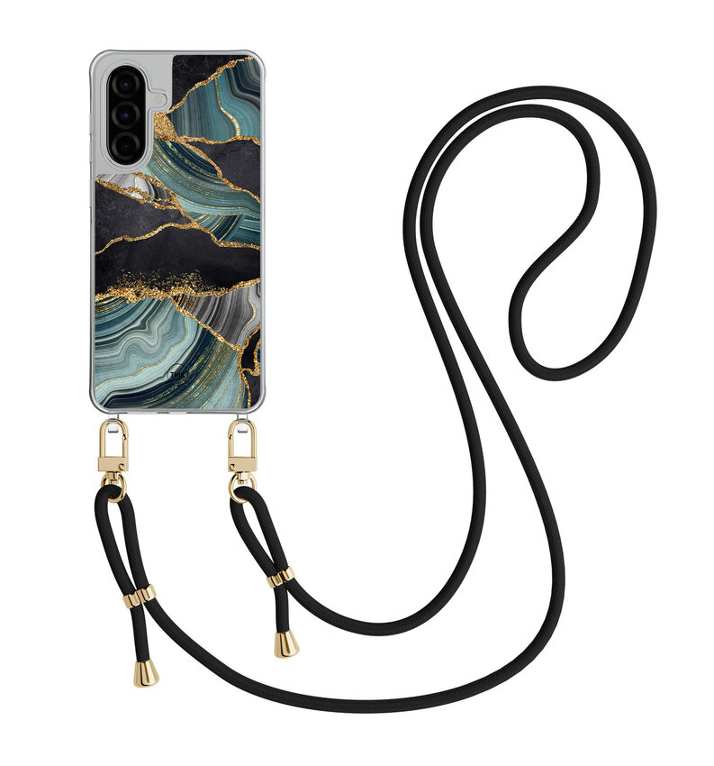 Samsung Galaxy A57 hoesje met zwart koord - Marble jade stone