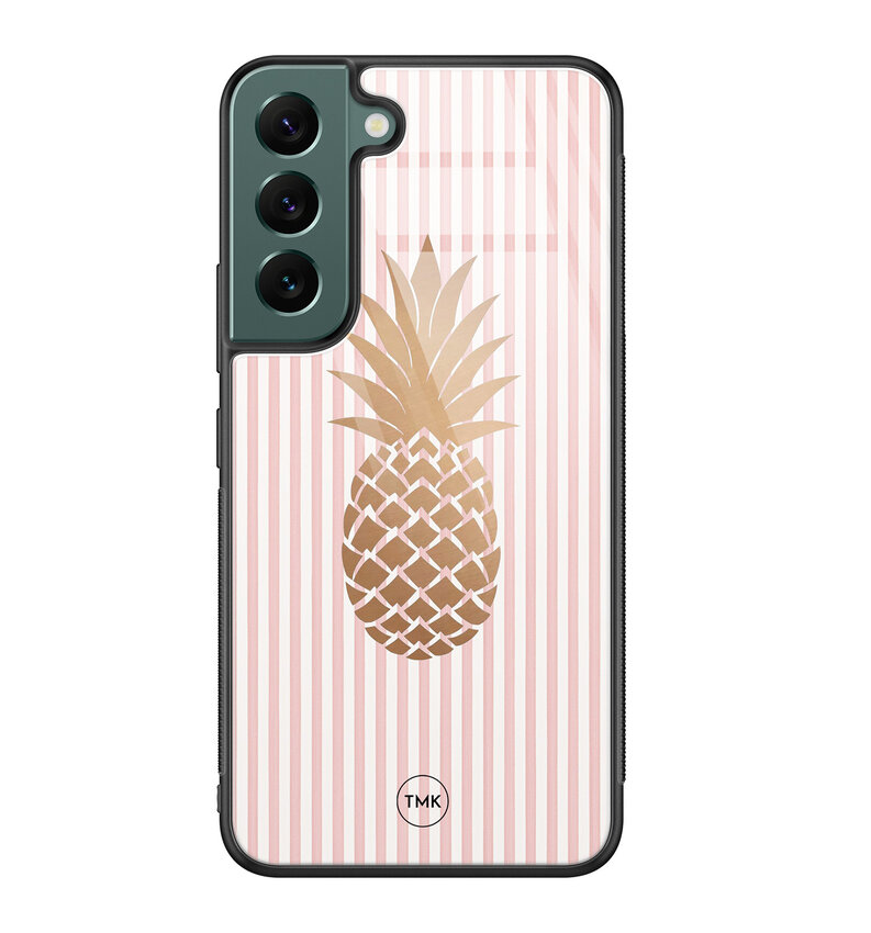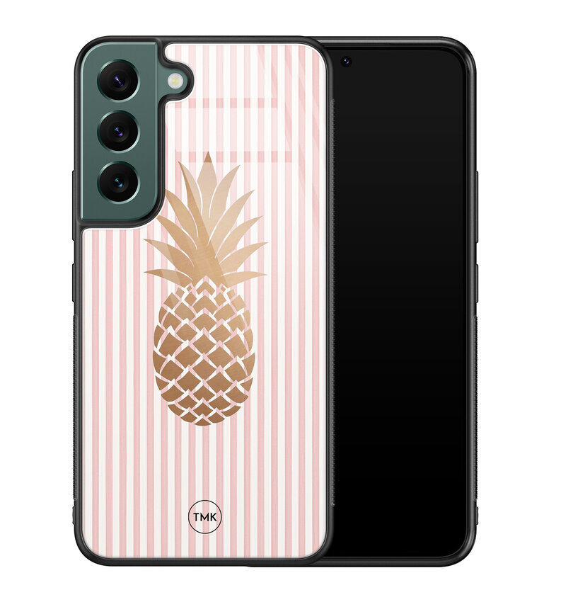 Samsung Galaxy S22 glazen hardcase - Ananas roze