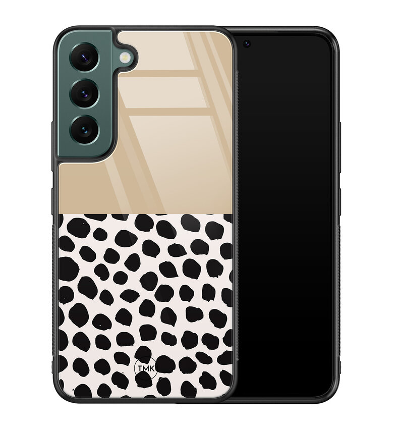 Samsung Galaxy S22 glazen hardcase - Brown dots abstract