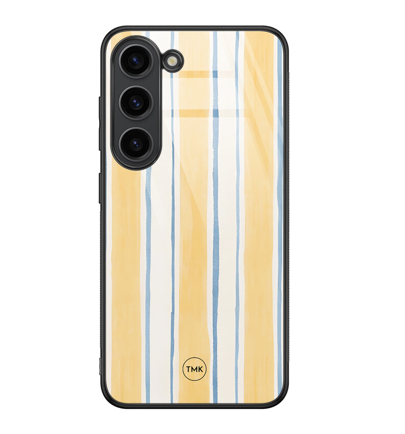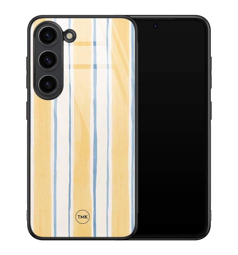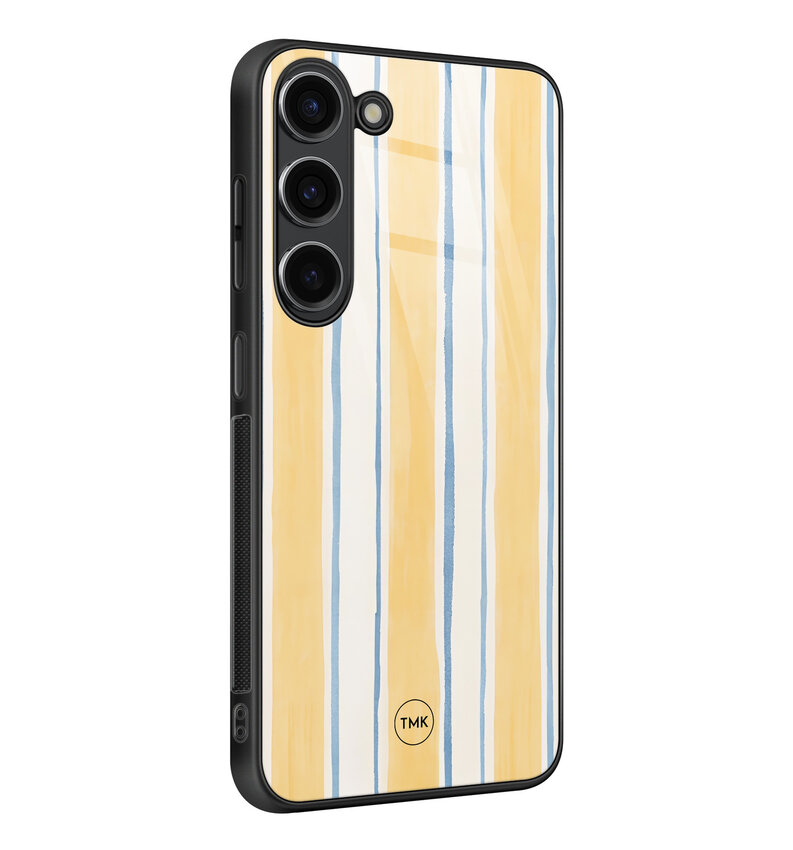 Samsung Galaxy S23 glazen hardcase - Gestreept geel