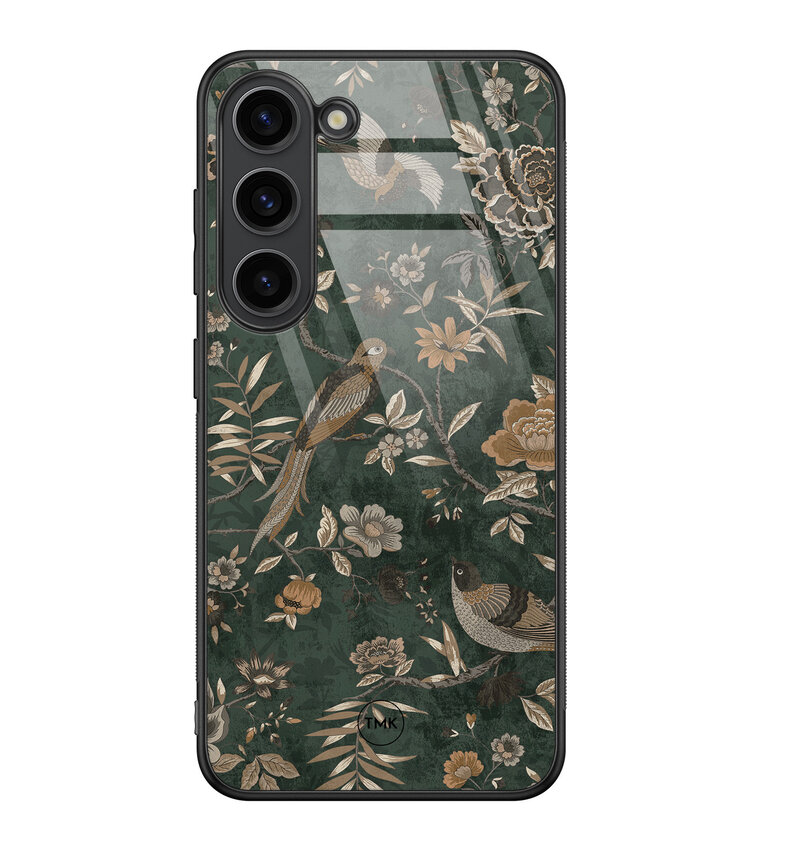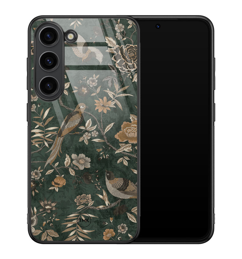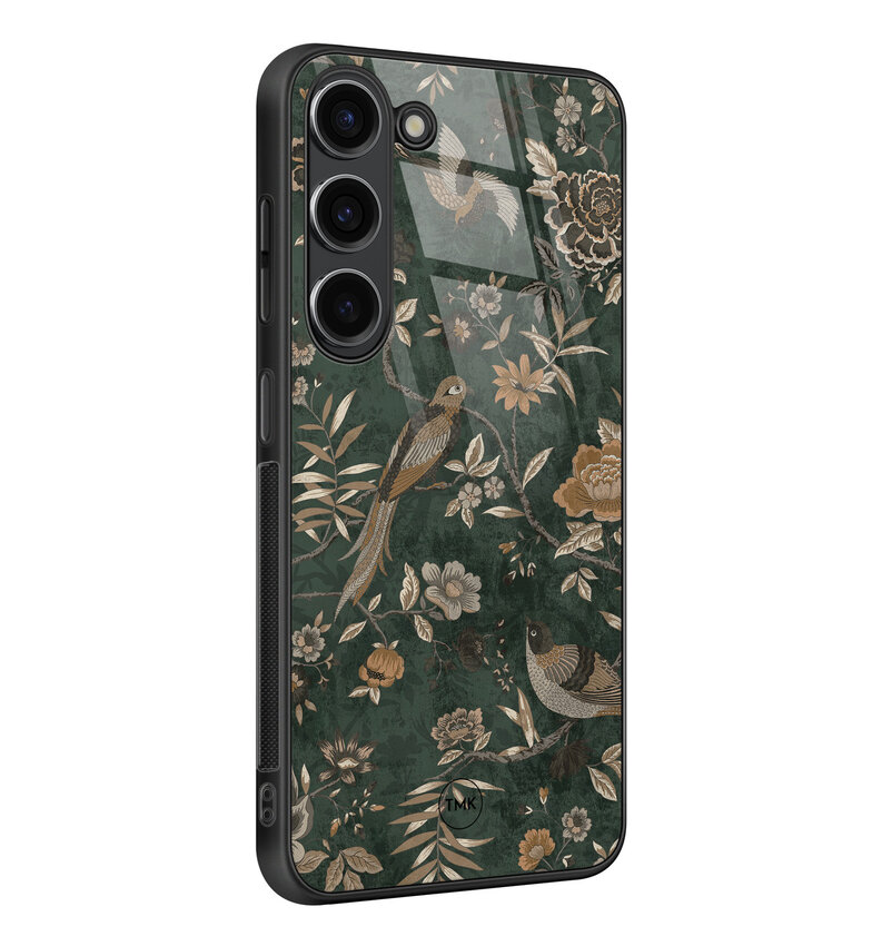 Samsung Galaxy S23 glazen hardcase - Khaki golden flowers
