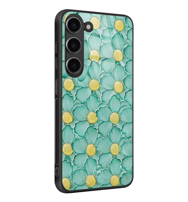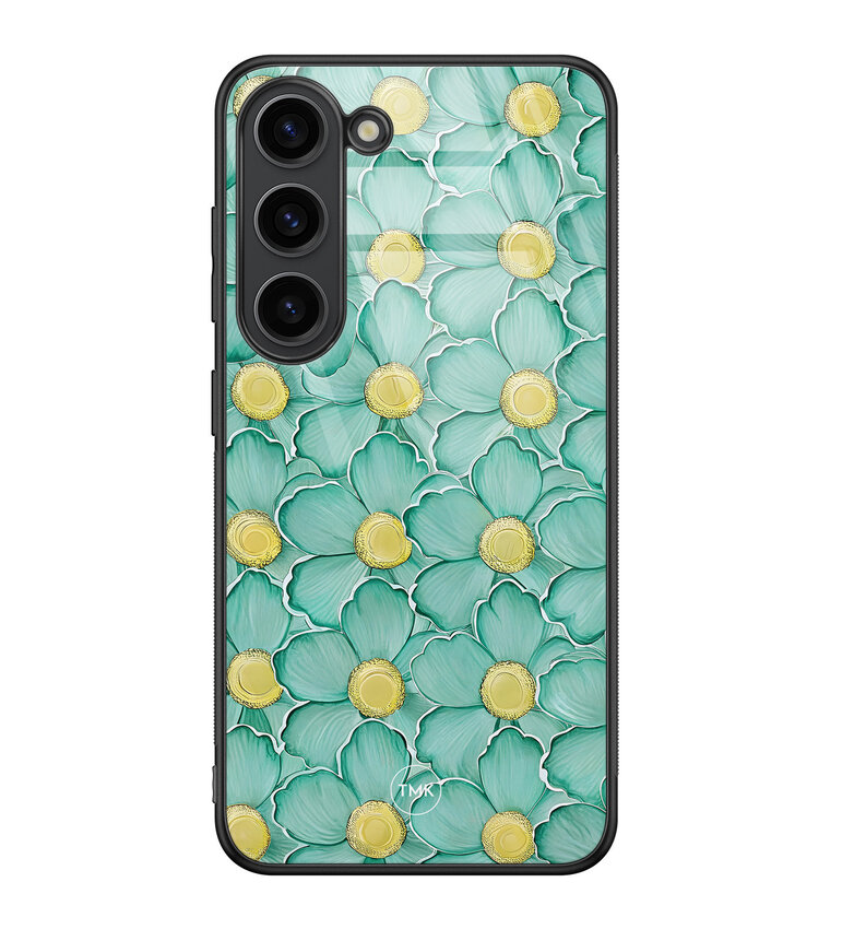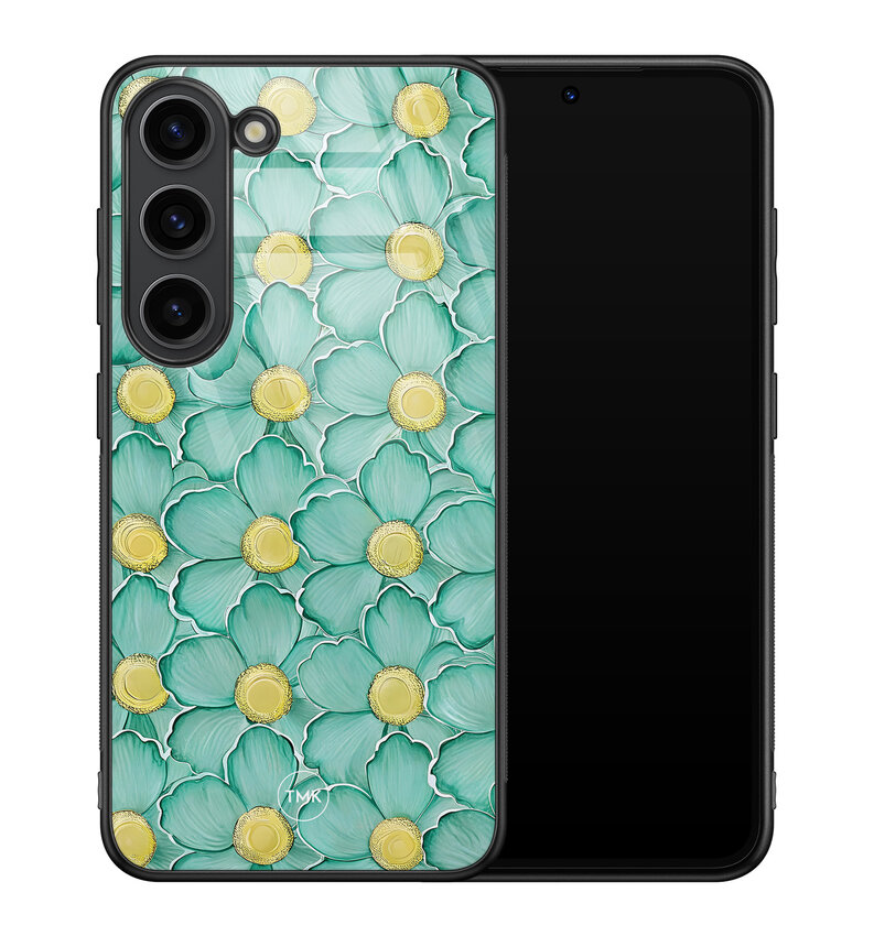 Samsung Galaxy S23 glazen hardcase - Mint blossom
