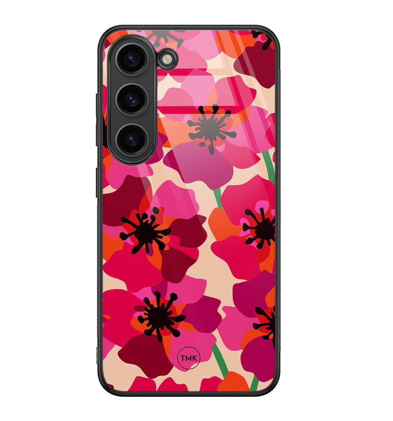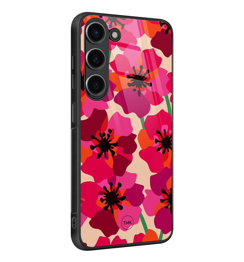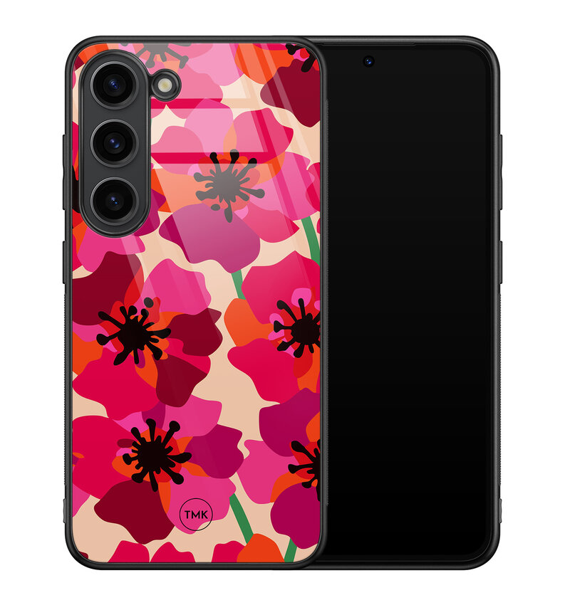 Samsung Galaxy S23 glazen hardcase - Pink floral bliss