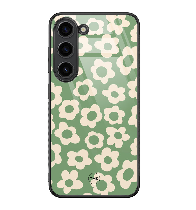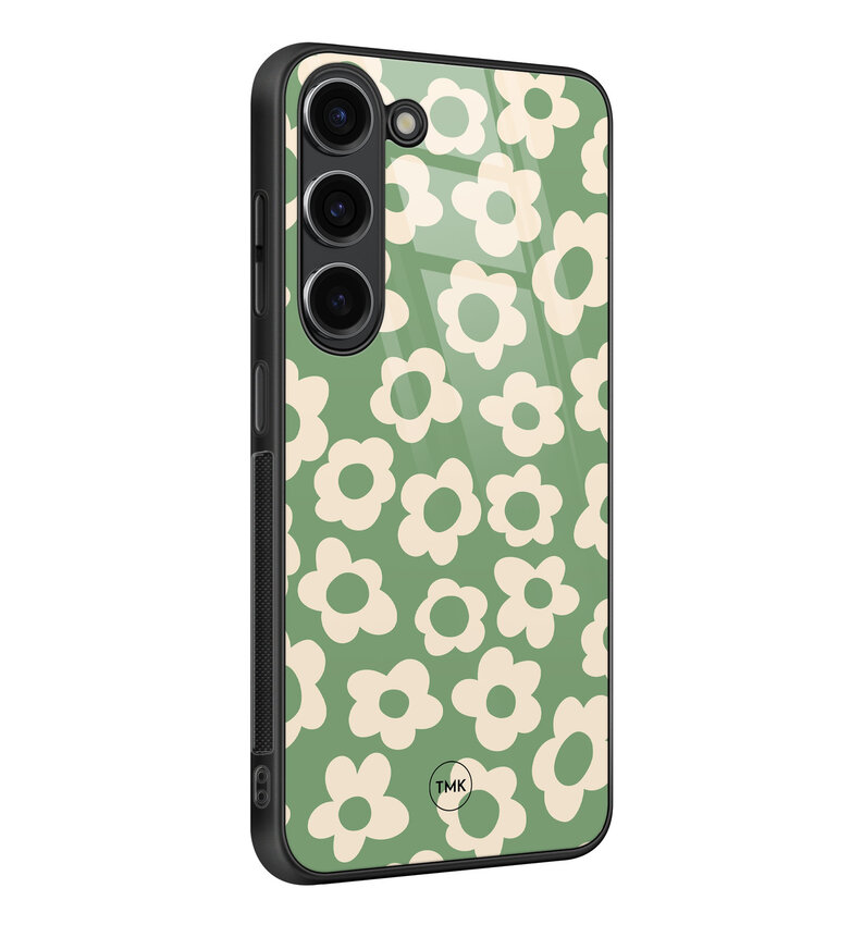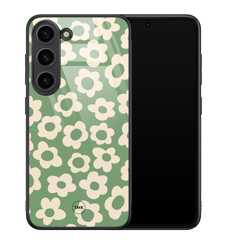 Samsung Galaxy S23 glazen hardcase - Retro cute flowers