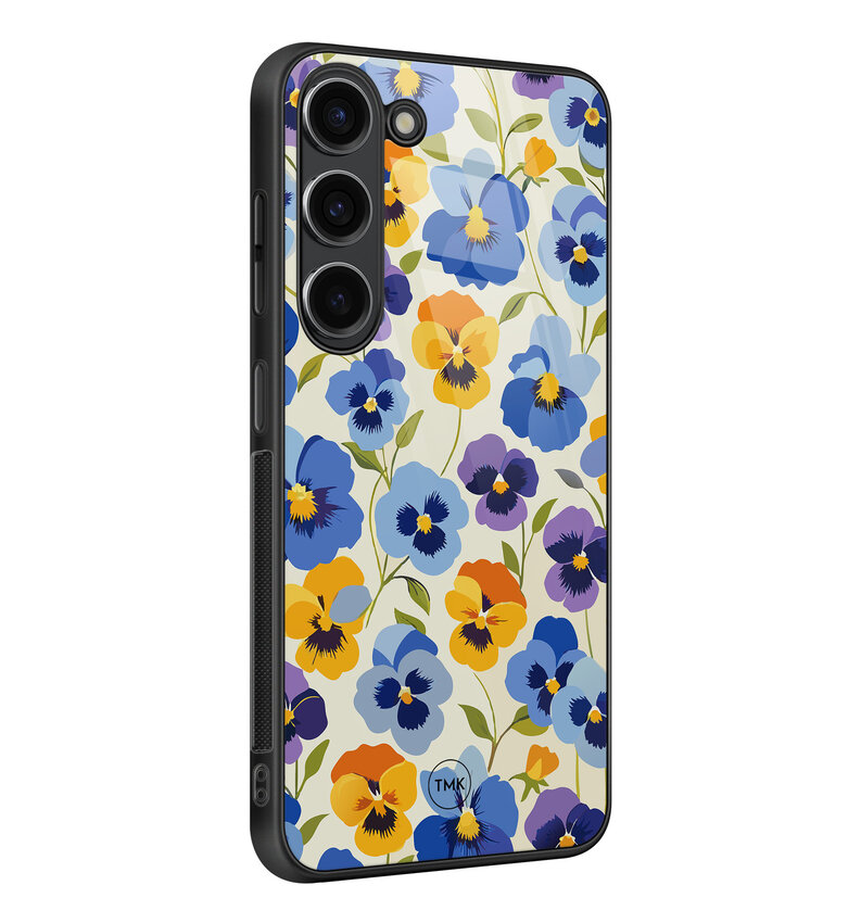 Samsung Galaxy S23 glazen hardcase - Viooltjesmix bloemen