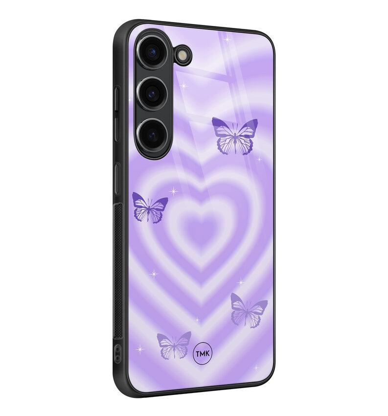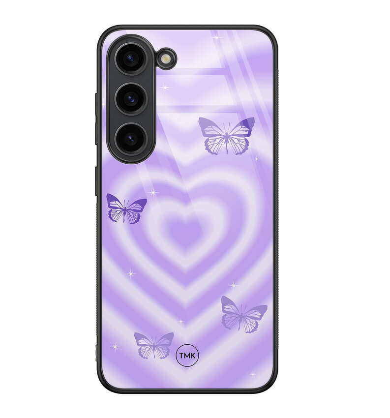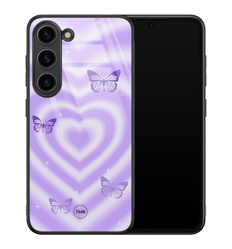 Samsung Galaxy S23 glazen hardcase - Vlinders retro paars
