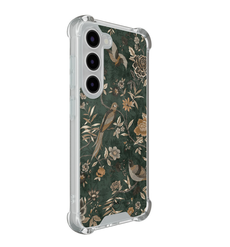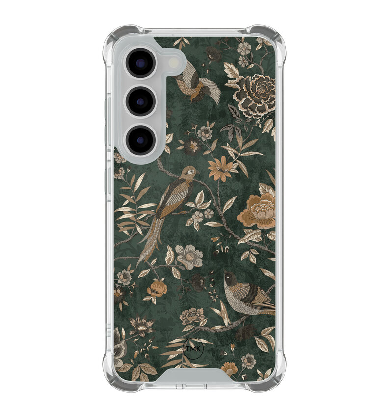 Samsung Galaxy S23 shockproof hoesje - Khaki golden flowers
