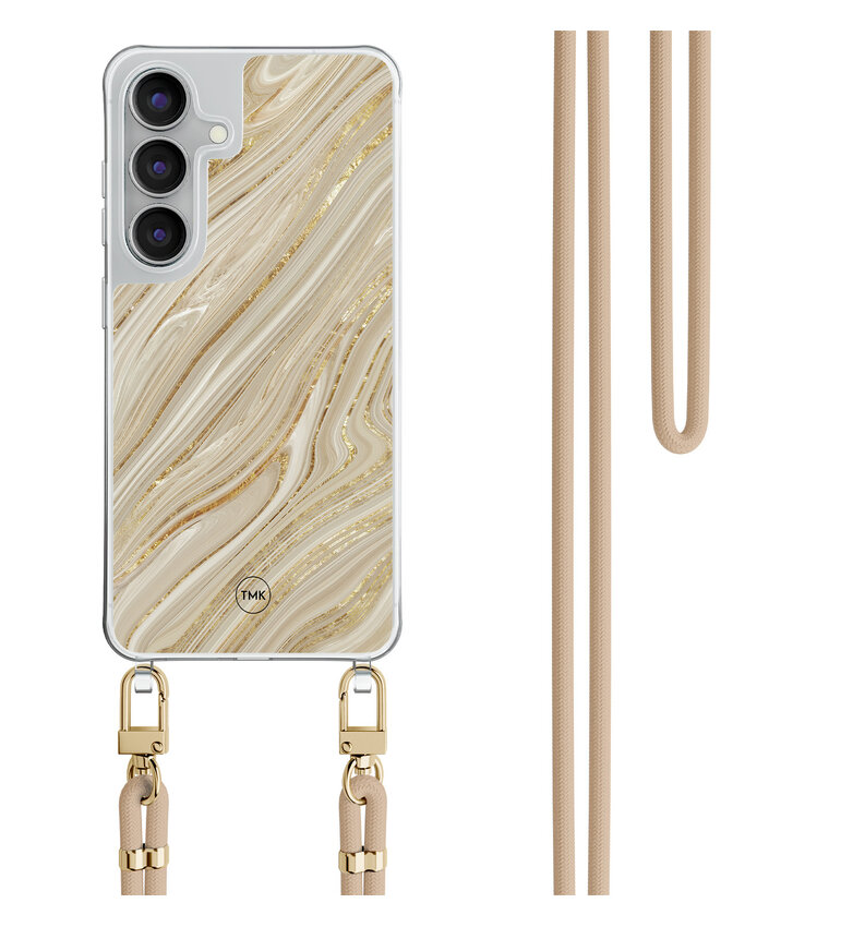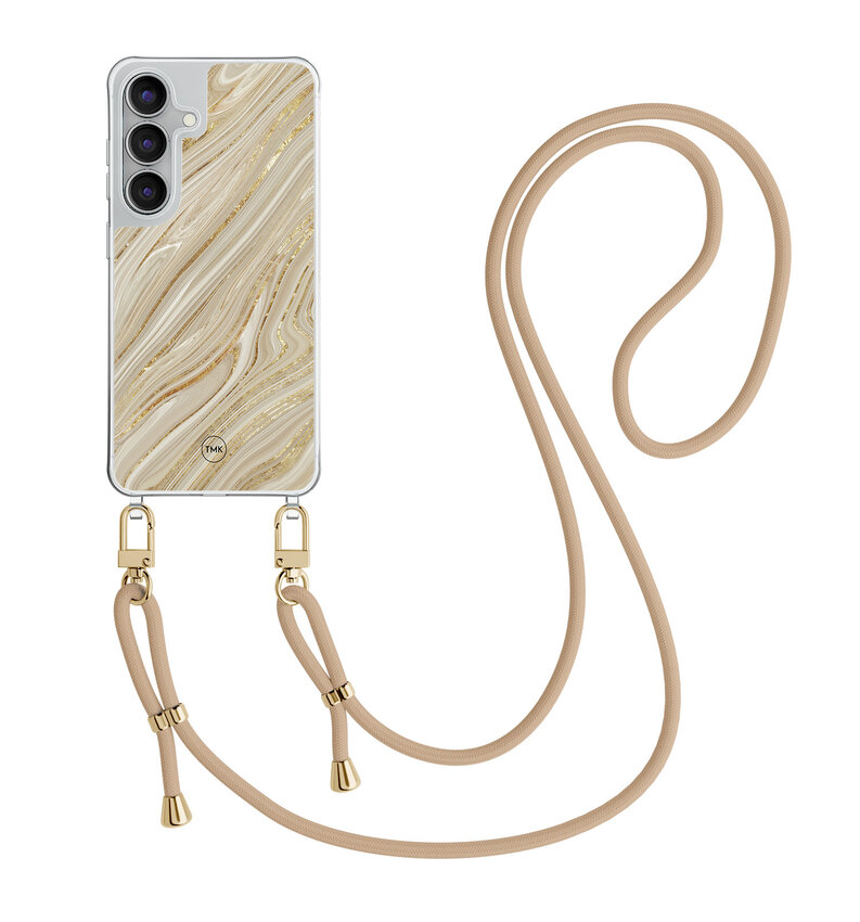 Samsung Galaxy S25 FE hoesje met beige koord - Golden marble