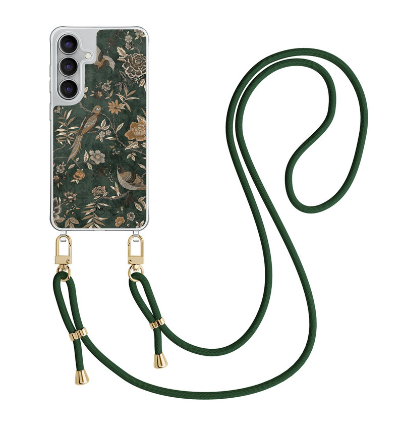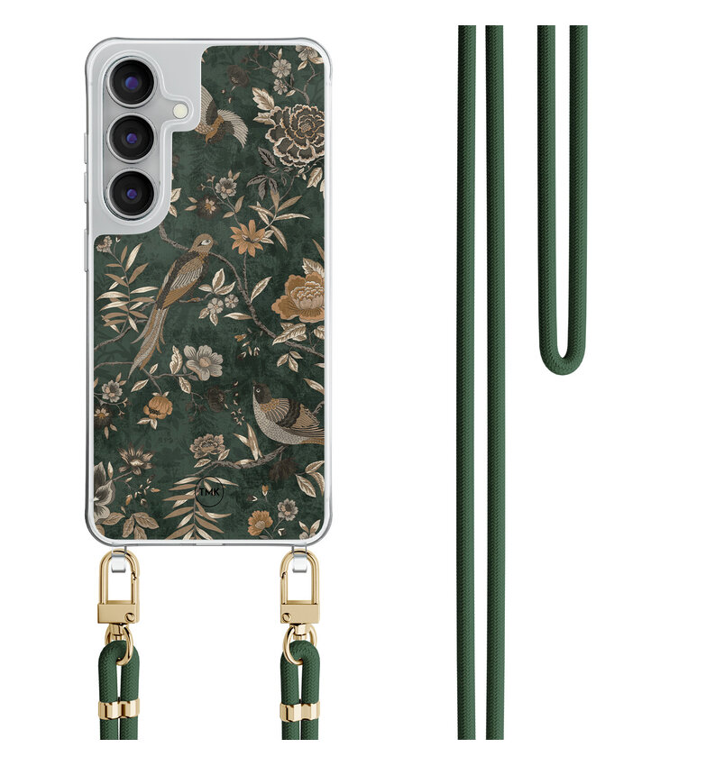 Samsung Galaxy S25 FE hoesje met groen koord - Khaki golden flowers