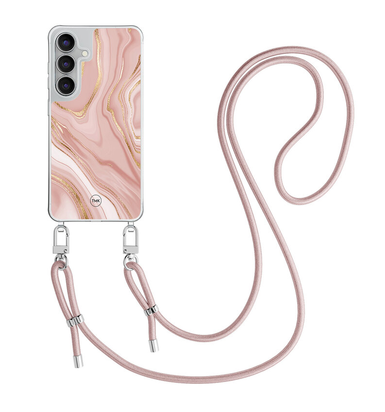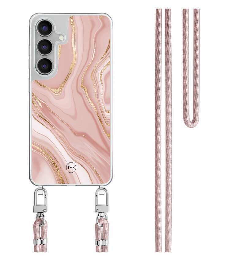 Samsung Galaxy S25 FE hoesje met rosegoud koord - Rose marble