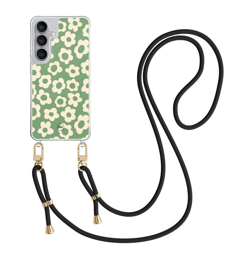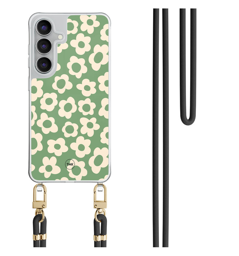 Samsung Galaxy S25 FE hoesje met zwart koord - Retro cute flowers